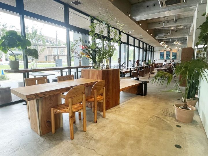 「公園の中の公園」をコンセプトにした店内は、こだわりの家具と光が差し込む大きなガラス窓が特徴的。至る所にグリーンも配置されているので、コンセプトどおり、公園の中で過ごしているかのような気分になれます。