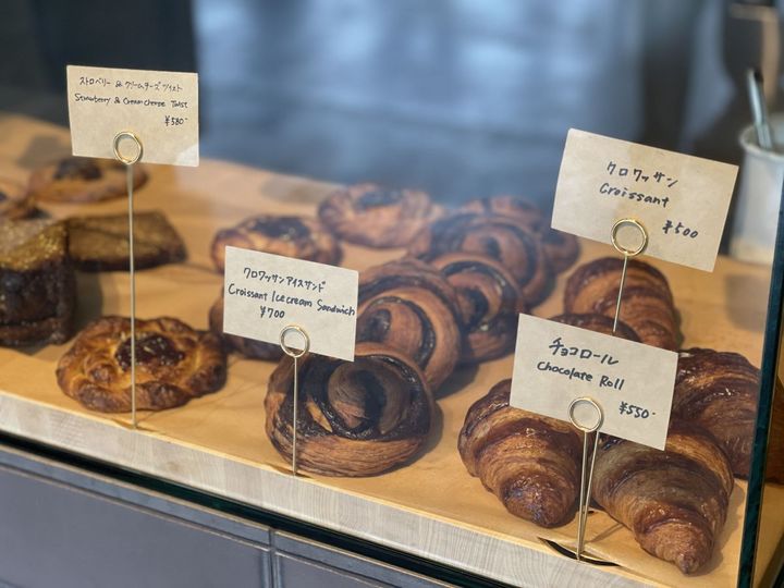 「本日のアイスコーヒー」500円と「カフェラテ(HOT)」600円は、コーヒー豆のうま味を最大限に引き出すように抽出されたドリンク。「Overview Coffee」から取り寄せた豆をバリスタが飲んでみて、「この産地のコーヒー豆は酸味が強いからアイスコーヒーに向いてそう」などと、豆の産地や状態に応じてどのように提供するかを毎回決めているのだとか。お店に届いた豆は「エイジング」とよばれる熟成期間を経て、飲み頃と判断されてから提供されるので、訪れるたびに違った味わいを楽しめます。