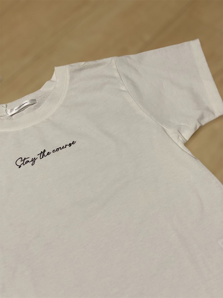 セットのTシャツは胸元にロゴ入りで、一枚で着ても存在感があります! 透けにくくはなっていますが、気になる方はベージュのインナーをおすすめします。