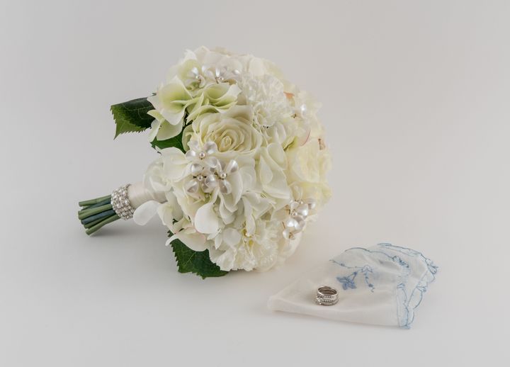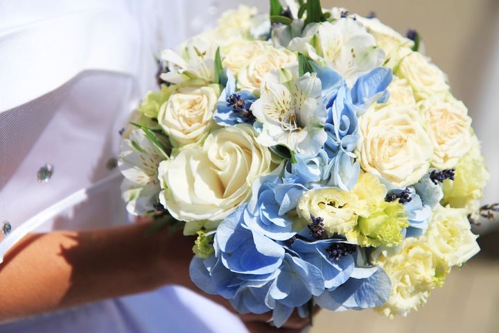 サムシングブルーをクラシカルに取り入れるなら、ブーケがおすすめ。白とブルーのコントラストが美しいものや、異なる色合いのブルーでまとめたもの、一輪だけブルーの花を加えたものなど、ドレスに合わせて選んでみましょう。