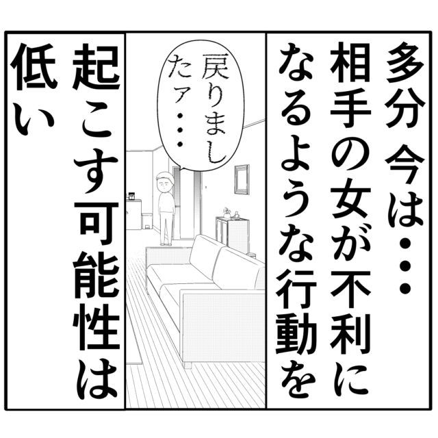 「多分今は・・・相手の女が不利になるような行動を起こす可能性は低い」すみれさんがそう考えていると、着替え終わった良し男さんが戻ってきました。