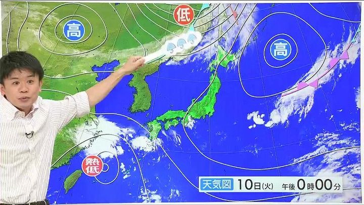 きょう10日は雲が広がっています。その原因を10日正午の天気図と雲の様子で見ていきます。
