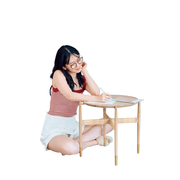 めがねと赤小物でこなれ感を演出。小物を上手に取り入れて大人っぽコーデに♡