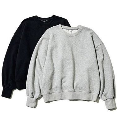 グレー、黒スエット/カランシエル(シップス インフォメーションセンター) 「身幅も適度なゆるさで丈感もスタンダード。すそとそで口はすぼまり、そではボリューミィ。スウェット好きで毎シーズン、何枚も試着するのですが、コレは着たときのシルエットが素晴らしい」(スタイリスト・船戸唯さん)