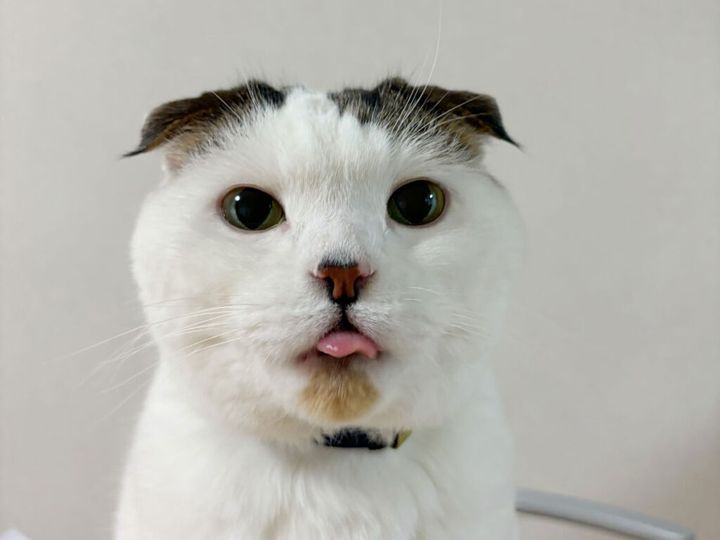 舌がときどき出しっぱなしなオレ。舌のしまい忘れって、安心しきってる証拠らしいでー。