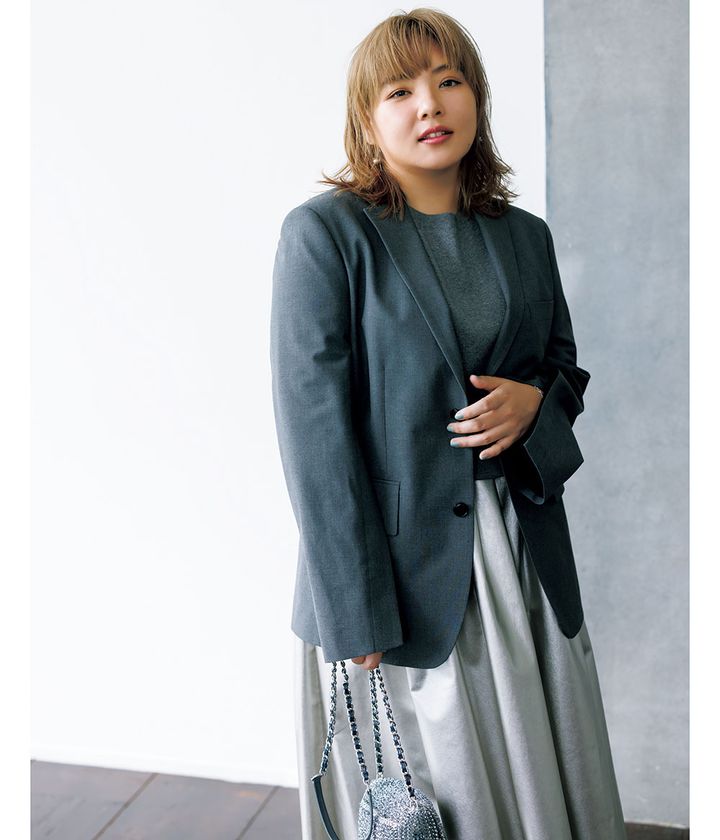 しっかりしたボディラインを活かして着るビッグシルエットが大人。憧れジャケットを軸に大人なグレートーンコーデに挑戦。