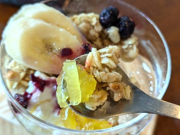 パイナップルのレストも、自然な甘みでヨーグルトを惹きたてています。蜂蜜がかかったグラノーラと食べると満足度も上がりましたよ。