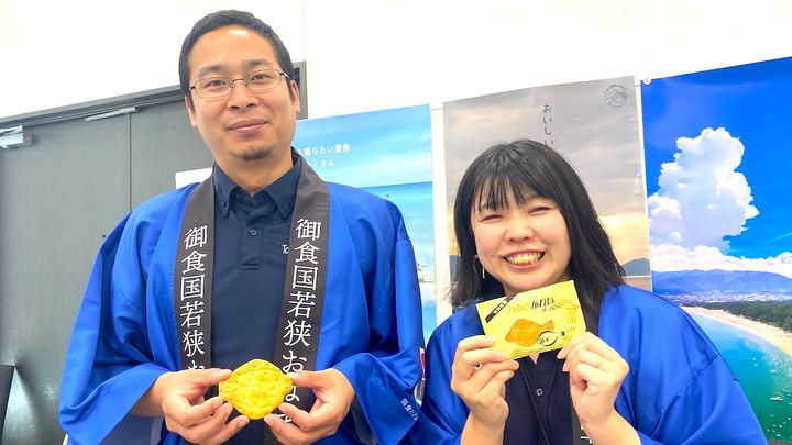 北陸の複数の自治体が集まって、それぞれの地域の魅力をアピールする北陸PR会議にて、気になるものを見つけました。それがこちら、若狭銘菓の「わかさ かれいサブレー」。皇室にも献上される若狭かれいをモチーフに作られたサブレーの可愛さに惹かれブースに立ち寄ると、スタッフさんがボソリと一言。