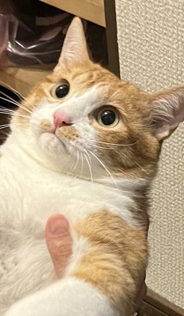 だっこされているネコの表情が話題に!「お口が一文字になってる」「口元がハムッてなっててかわいい」