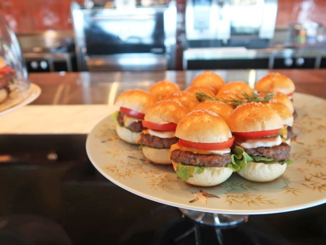 この日は、同レストランのシグネチャーディッシュの「神戸牛100%のハンバーガー」のミニサイズと、炭火焼オーブンで焼き上げたトウモロコシのグリルを試食。