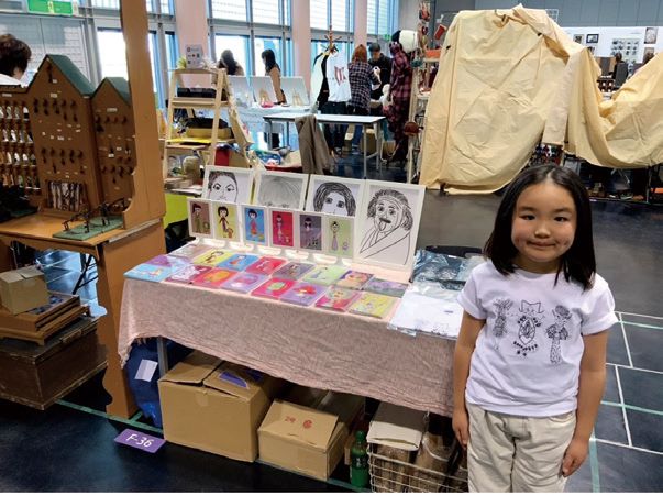 Conocaさんが、描いた絵などをマルシェで販売している様子