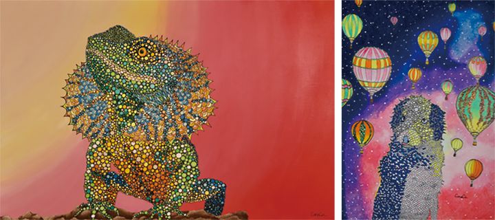左/「エリマキトカゲ」Conocaさんらしいカラフルな色使いのアクリル画