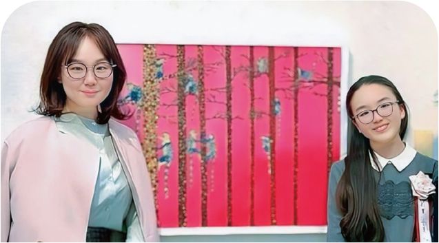 Conocaさん(13歳)と長男(8歳)の⼆児の⺟。Conocaさんの作品をインスタに投稿し、キッズアーティストとしての活躍の場を広げる。