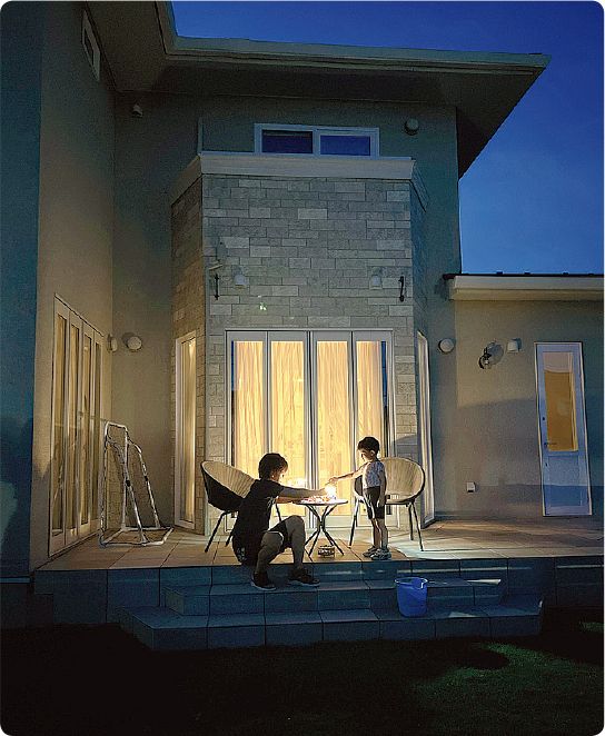 庭とのつながりのある間取りは正解でした。キッチンに居ながら、庭で遊ぶ子どもの様子を見られたり、友人を呼んで誕生日会やバーベキューをしたり、理想的な生活を送れています。