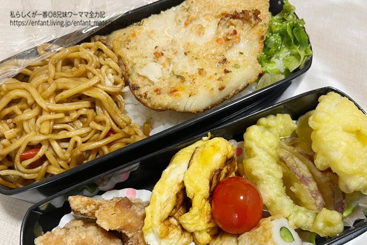 麺とご飯のハーフ弁当にしたところ「味変で飽きない」と意外と好評です。
