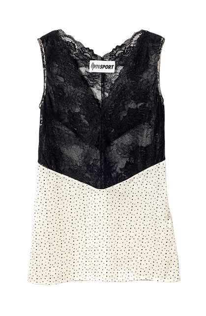 オペラスポーツのデザイントップス「ほんのりランジェリーライクなシルクトップスが昔から大好き。インナーの合わせ方で雰囲気も変わります」