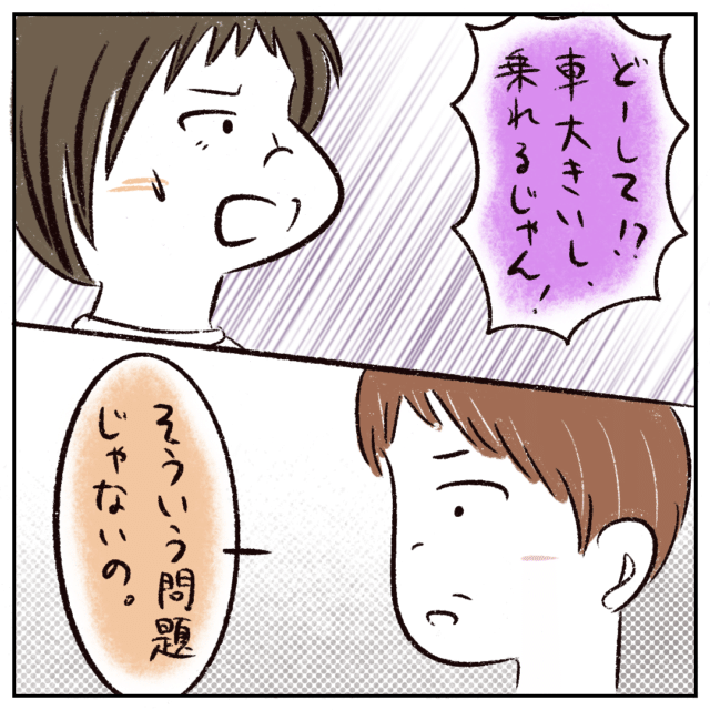 「どうして!?車大きいし乗れるじゃん!」反論するさなかちゃんに「そういう問題じゃないの」と冷静に言いました。