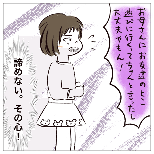 すると「お母さんにお友達のとこ遊びに行くってちゃんと言ったし、大丈夫やもん!」さなかちゃんは全く諦める気がないようです。