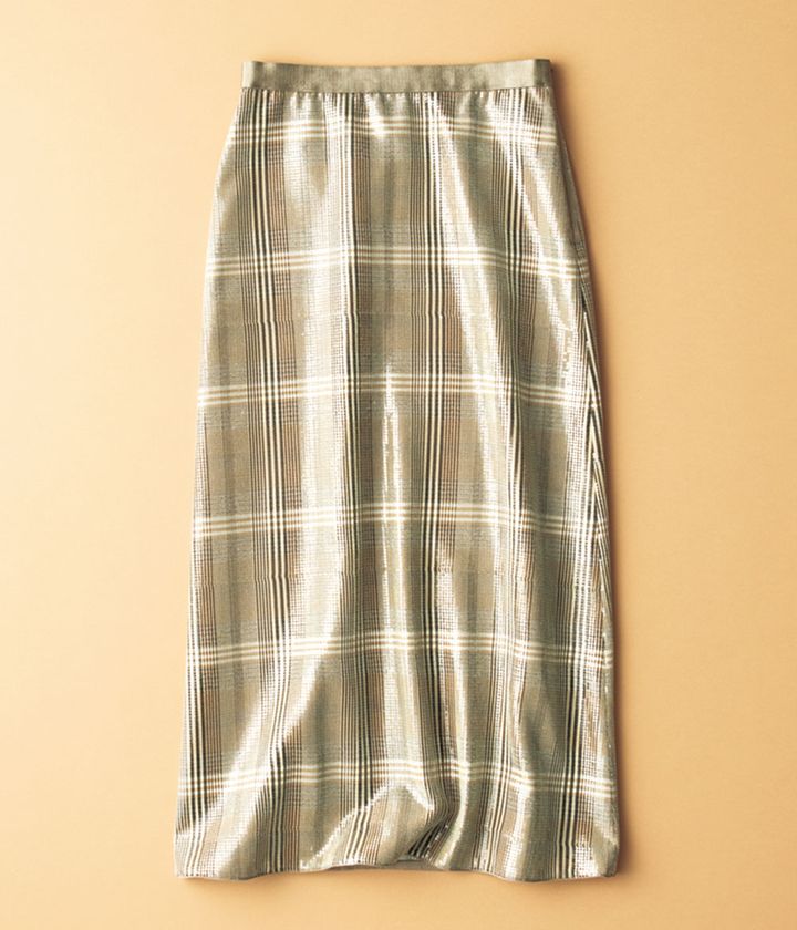 チェック地にスパンコールが丁寧に縫い付けられた手の込んだ一着。