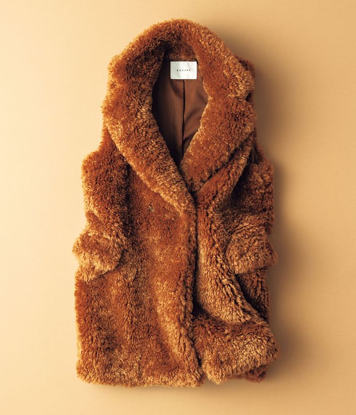 コートの上からも着られるオーバーサイズ。衿もとフカフカで暖かさもバッチリです。