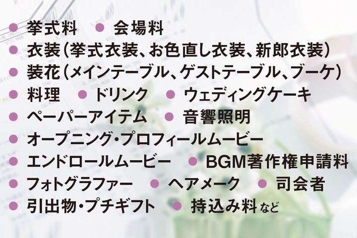 結婚式にかかる費用項目、何がある?
