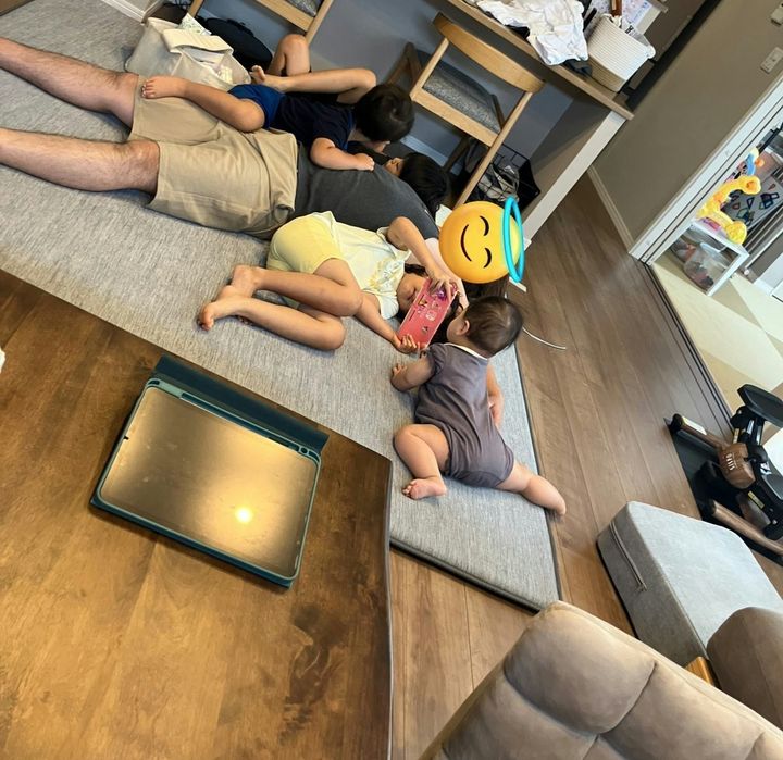 夜勤明け4児パパの幸せチャージに4.8万いいね「良い家族」「うらやましい」