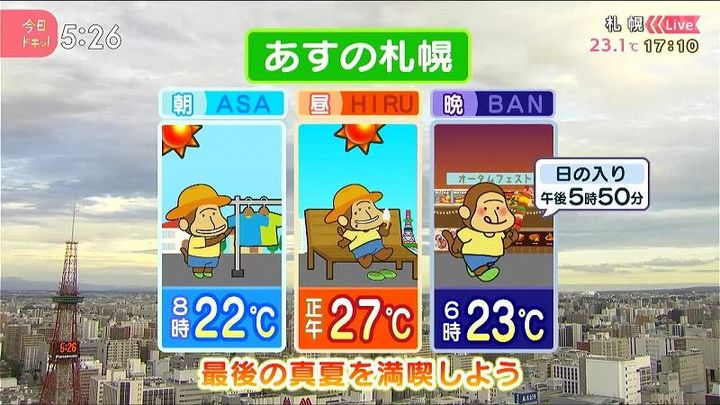 HBCテレビ「今日ドキッ!」の番組内でも独特(?)なイラストを使って天気をお伝えしています。