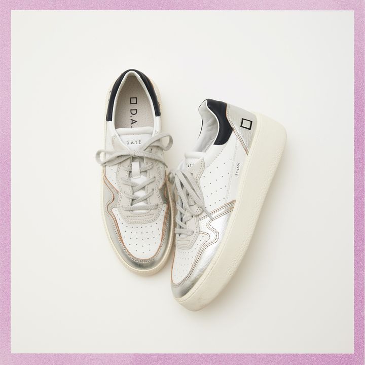 上品なレザーを使用したローカットスニーカーは、サイドアッパーに刻印したD.A.T.Eのスクエアロゴがポイント。ほどよく安定感あるソールが足元をサポートし、ちょうどよいボリュームがほしいときにも活躍してくれます。
