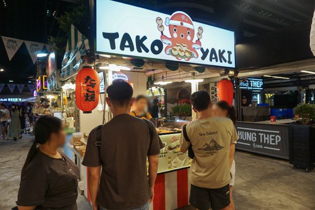 こちらも別のたこ焼き屋。日本風のたこ焼きに加えて、ジャイアントサイズのタコが入ったローカライズバージョンにも注目です。