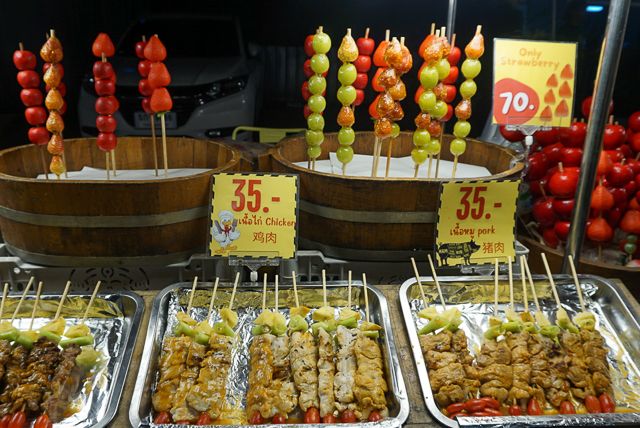 こちらも串料理。フルーツ串もありますね。ワンハンドグルメは食べ歩きにもぴったりです。