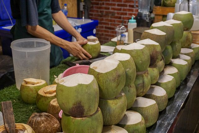 マンゴーのフレッシュな甘味を楽しめるドリンクです。取っ手つきなので手がふさがらず、マーケット内を歩きながら飲みやすいのもポイント。飾りのマンゴーももちろん食べられますよ。ほんのり汗ばむアジアの夜に、身体のほてりを爽やかにクールダウンしてくれます。