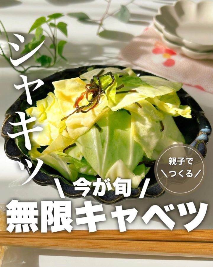 罪悪感なく照り焼きチキンをたくさん食べたいとき、付け合わせにキャベツを使ってみてください。食物繊維が豊富なので、糖や脂質を余分に吸収しないよう妨げてくれますよ。食べやすい大きさにちぎってポリ袋に入れ、ごま油と塩昆布といっしょに振って混ぜるだけで完成です。