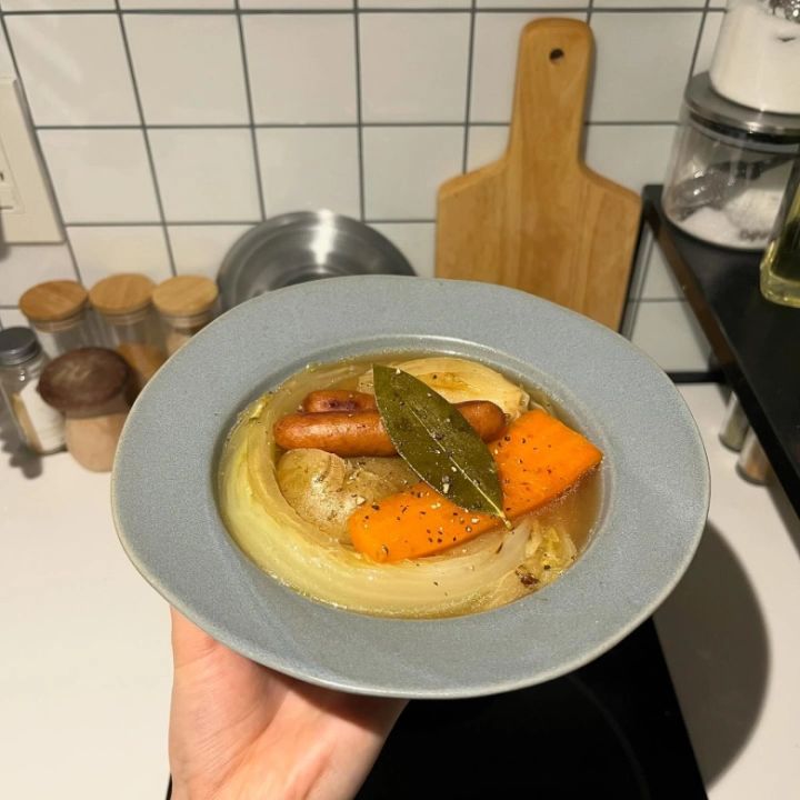 付け合わせを一品ですませたいとき、玉ねぎやにんじんなどたくさんの野菜を一度に摂れるポトフはいかがでしょうか。具材を一度フライパンで焼くことで、一層おいしくなります。