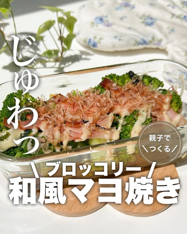 ビタミンCがたくさん含まれるブロッコリーと、たんぱく質が豊富な鶏肉をいっしょに摂ると、コラーゲンの合成をサポートする働きが期待できるので美肌作りにぴったり。耐熱容器にブロッコリーとベーコンを入れて加熱し、めんつゆとマヨネーズをかけてトースターで焼いたらできあがりです。
