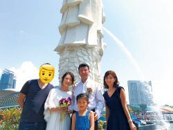シンガポールにて、河中さんのお父さんと今のお母さんにウェディングフォトをプレゼントしたとき。