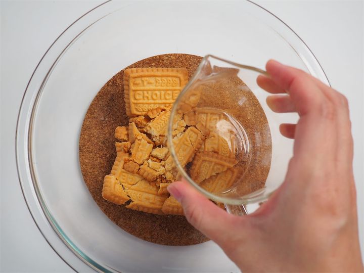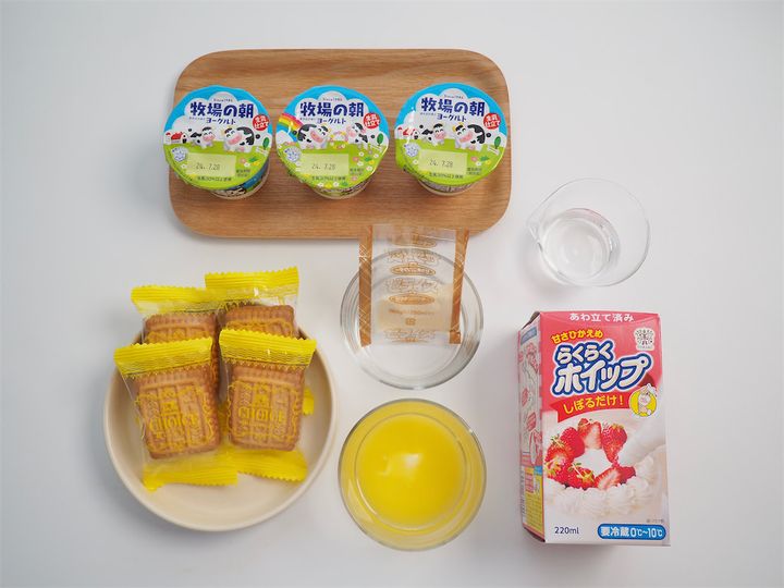 今回のレシピは比較的フレキシブルに提案してくれています。森永製菓のビスケット「チョイス」は、別のビスケットやクッキーでも可能。絞るだけホイップのホイップ済みの生クリームではなく、普通の生クリームを使ってもOK!その場合は、甘さが控えめになるのでお好みでお砂糖を加えて作ってもいいとのこと。そして、ヨーグルトも無糖のよくあるヨーグルトでも代用することは出来るようです。生クリーム同様、甘さは砂糖で調整するようにしましょう。