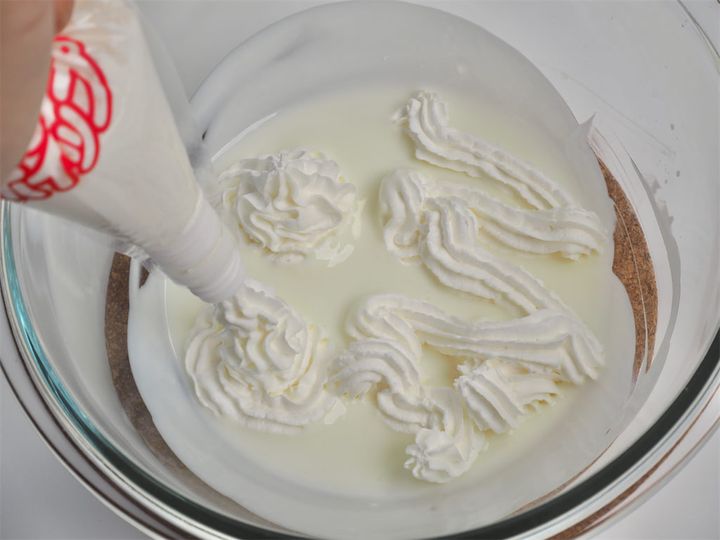 5. 4のボウルに絞るだけホイップを加え、ダマがないようしっかりと混ぜ合わせる。