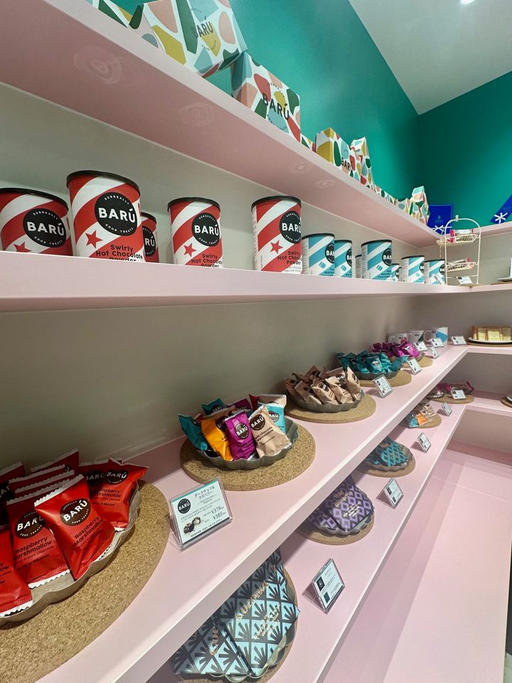 <BARU(バルー)>フラッペ・オ・ショコラでも使っているチョコレートパウダーや、ふわふわのチョコレートマシュマロが人気の「BARU」。ショコラには植物油脂を使用せず、ココアバターのみ使用。香りづけには香料ではなくバニラビーンズを使うなど、素材にこだわった本物志向のブランドです。目を引くカラフルなパッケージデザインもキュート。