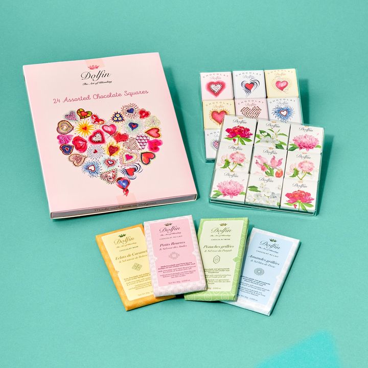 <Dolfin(ドルファン)>1989年から続くベルギーのショコラブランド。合成香料、合成着色料、植物油脂を一切使用せず、厳選された原材料と最高級のショコラをブレンドしています。「ショコラを通して旅をする」をコンセプトに、世界中の素材を高度なブレンド技術でミックスした、独創的なショコラが特徴。