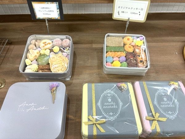 右:オリジナルクッキー缶8種入り(3240円)、左:北野店限定プレミアム北野缶(4000円)