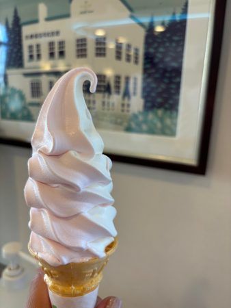 外で食べるソフトクリームもまた格別かも?カラスには遭遇しませんでした。