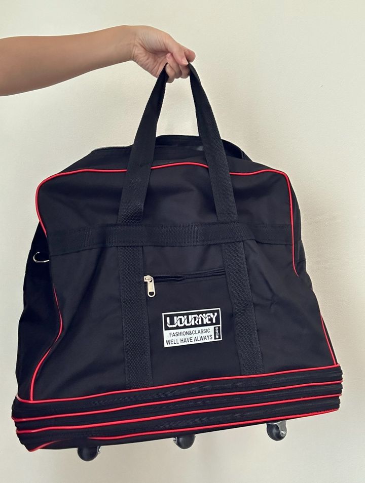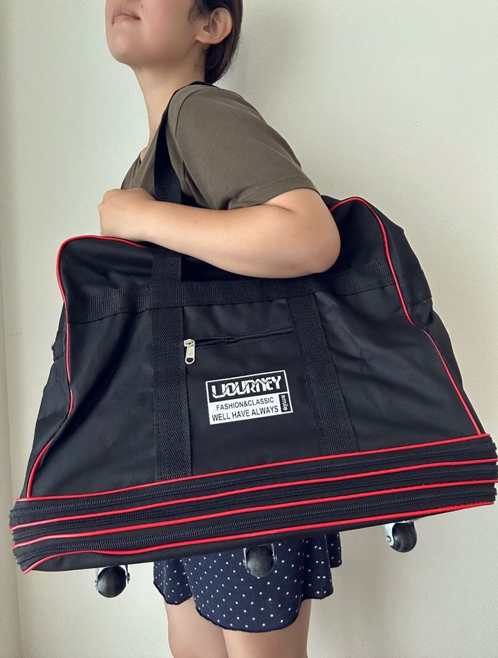 こちらのキャスター付きバッグ。 見た目はよくある大きめのボストンバッグです。