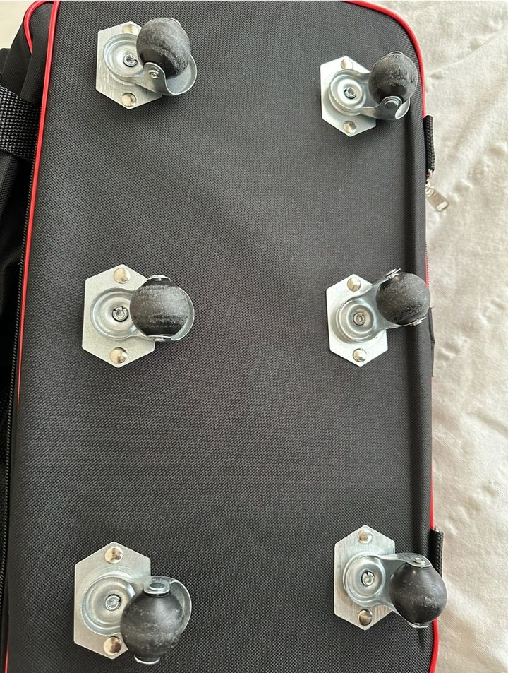 真ん丸のキャスターが6つ付いていて、中には底板も入っているのでしっかりしています。 ただ、実際に転がすとなかなかのキャスター音なので、要注意です!