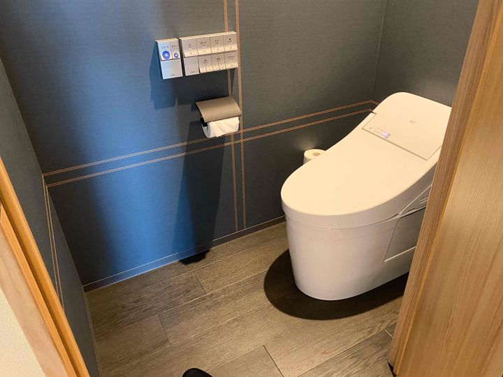 お風呂場とお手洗いはブルーを基調とした、シックなトーンで仕上がっています。