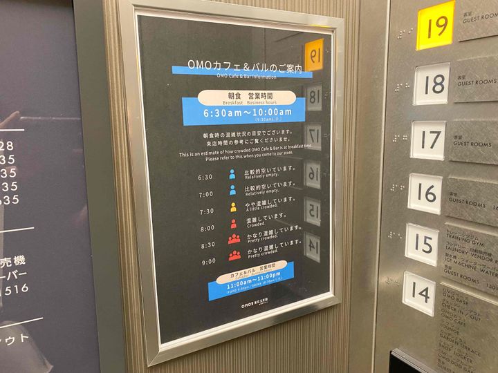エントランスロビーである「OMOベース」のシンボルは、「ご近所マップ」でしょう。現地スタッフイチオシの飲食店が紹介されていて、近隣グルメについて情報収集することができます。