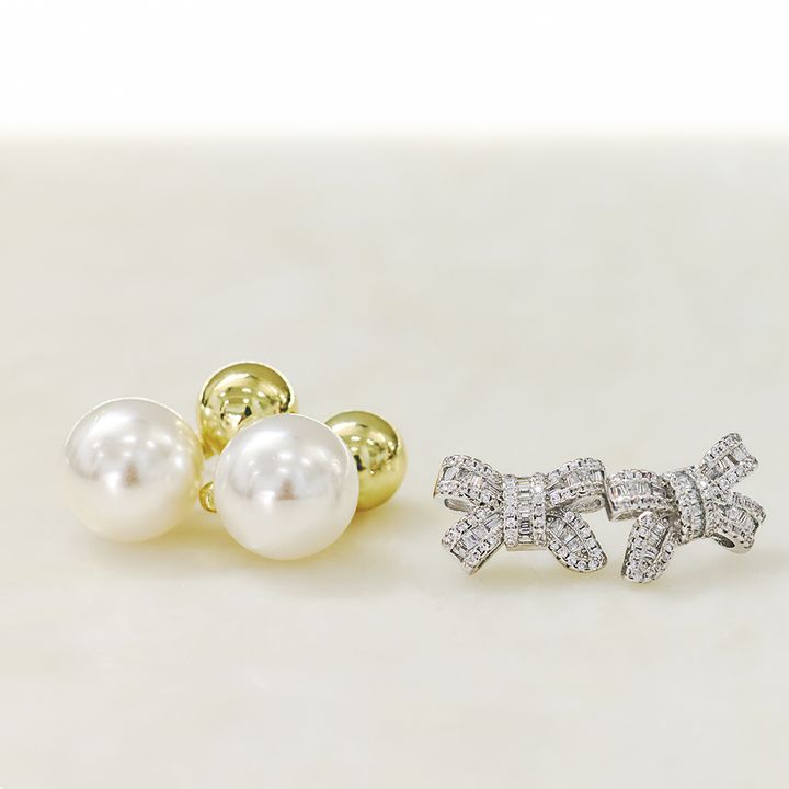 ②日常コーデが華やぐ「パールピアス」&「ビジューリボンピアス」
