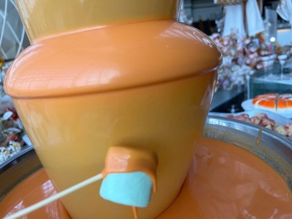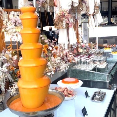 夕焼けを感じさせるオレンジ色とビーナスベルトを感じさせる淡いピンクや紫色のお花の装飾が、主役のスイーツたちを引き立ててくれています。