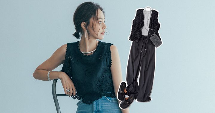 【秋めくコーデ2選】タンクに「レーストップス」を重ねて簡単洒落見え!