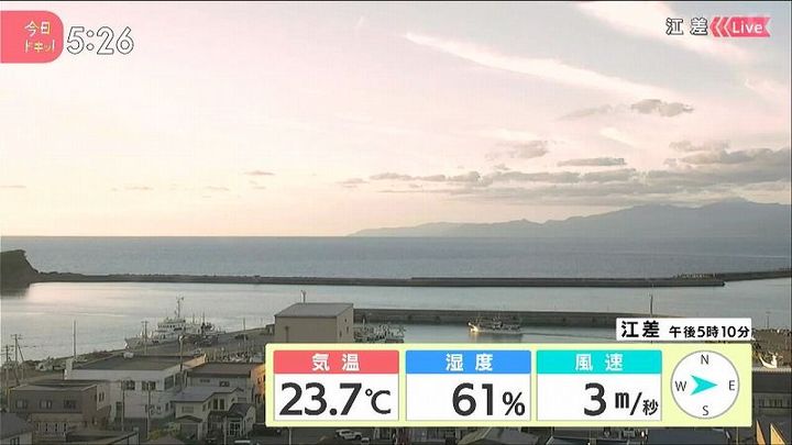こちらは12日午後5時10分ごろの江差の空です。海も穏やか。夕日がきれいですね。