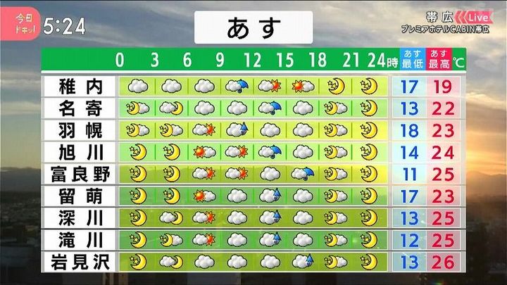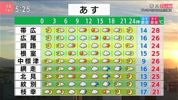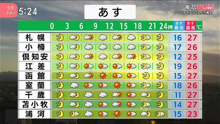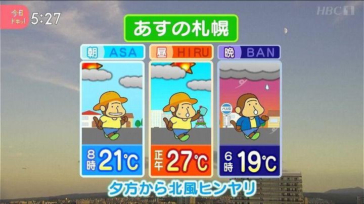 HBCテレビ「今日ドキッ!」の番組内でも独特(?)なイラストを使って天気をお伝えしています。